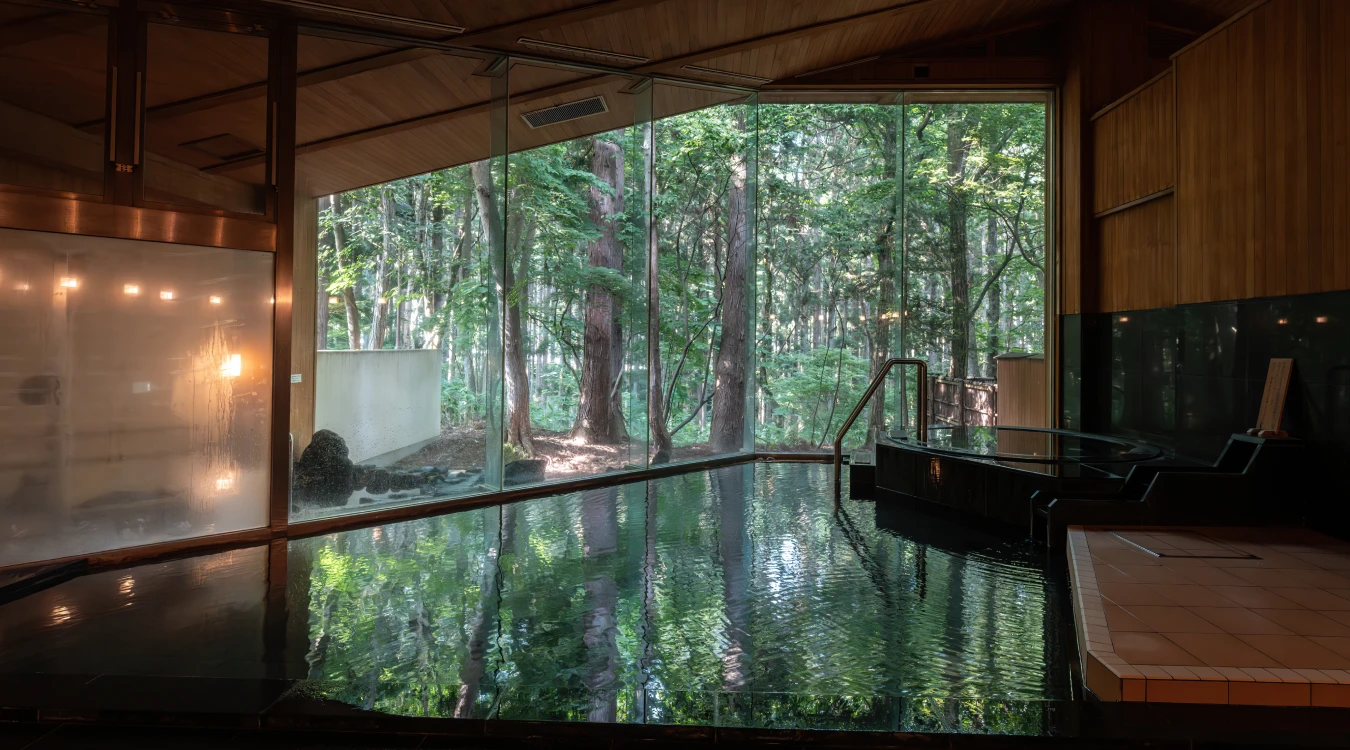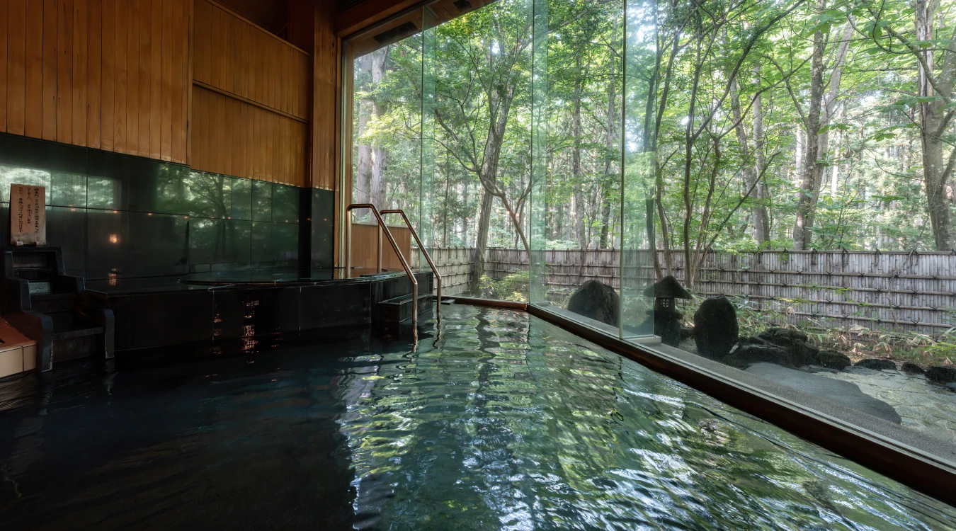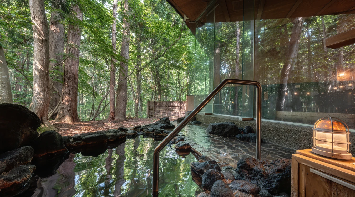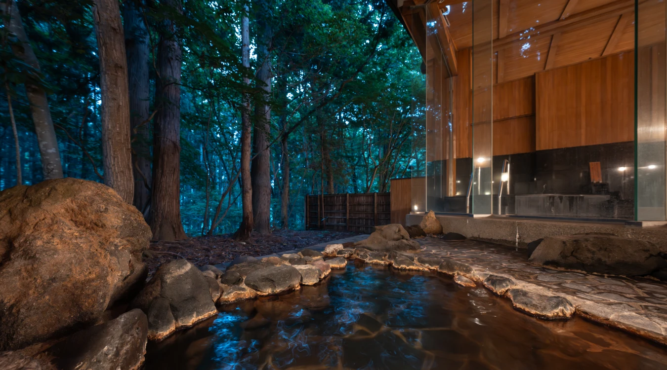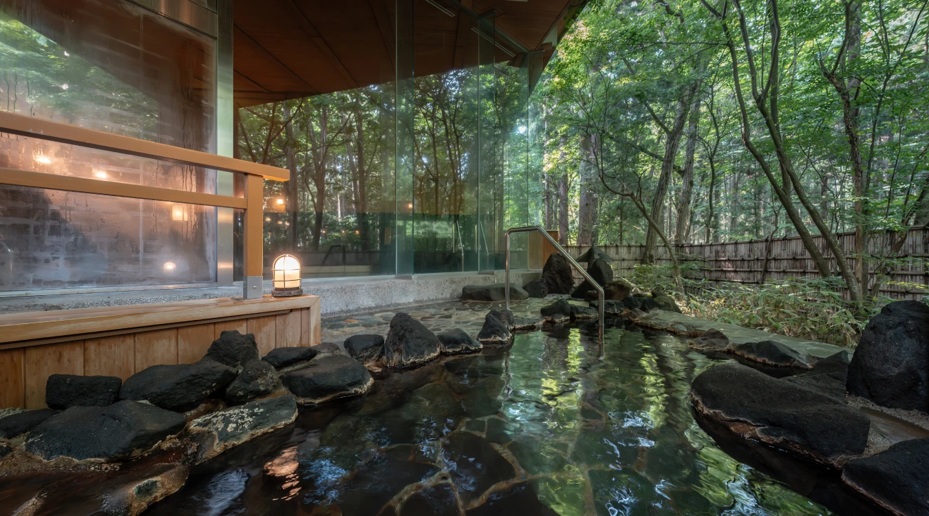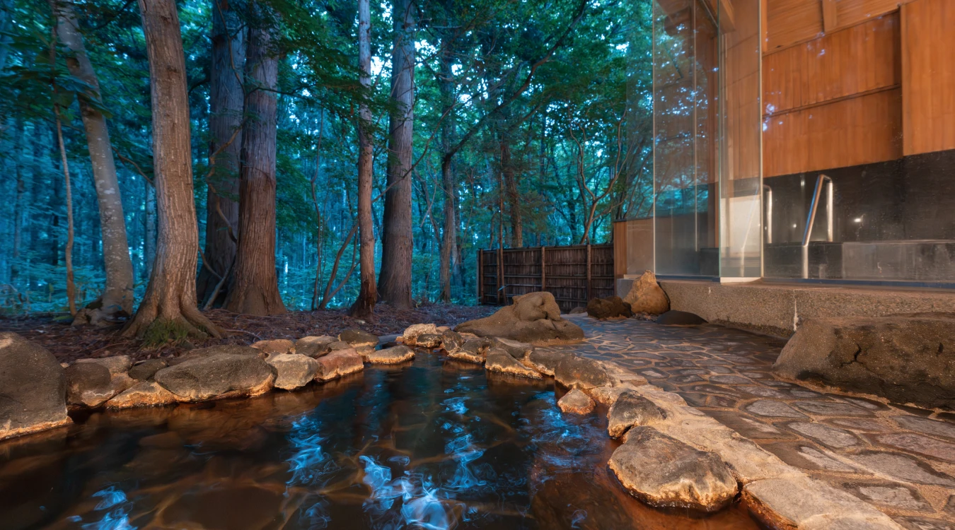四季折々の自然が広がる静寂の中、肌をしっとりと潤すとろりとした湯に身を委ねる贅沢な時間。